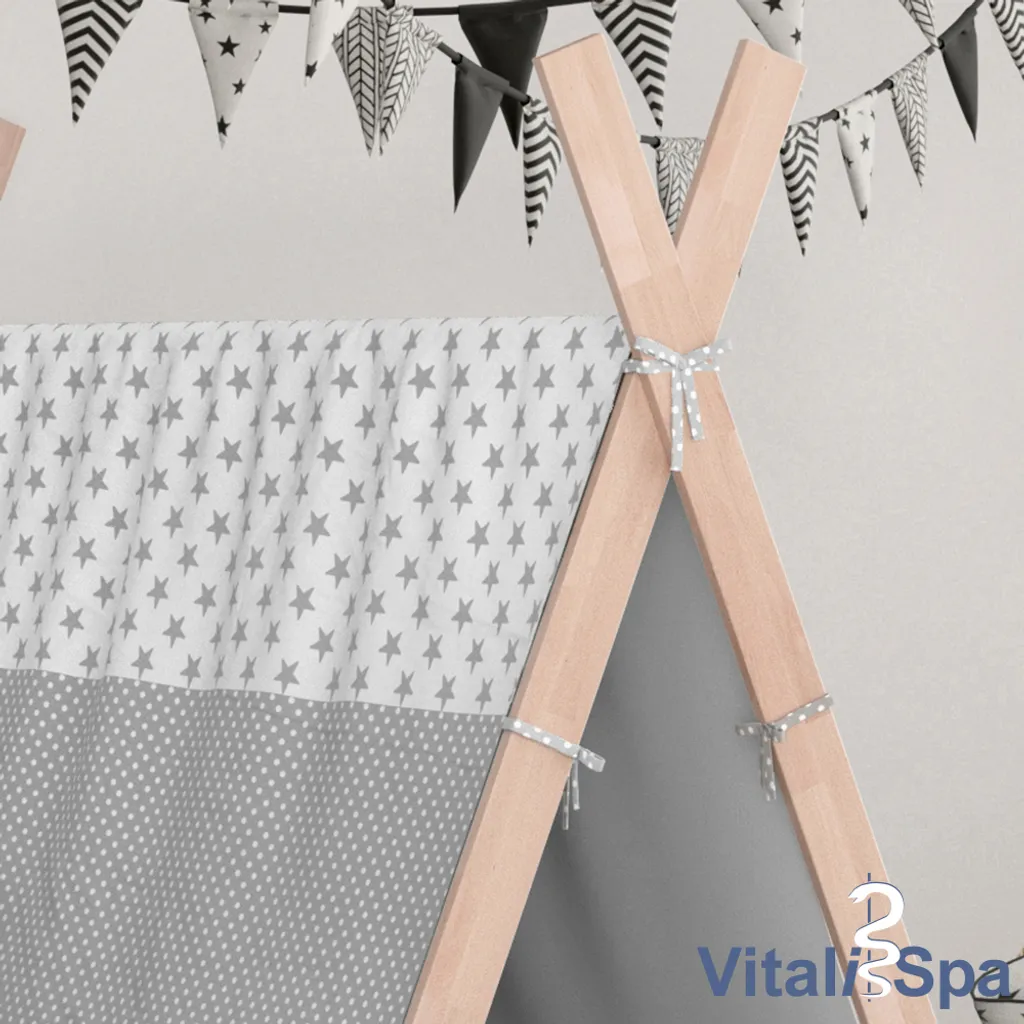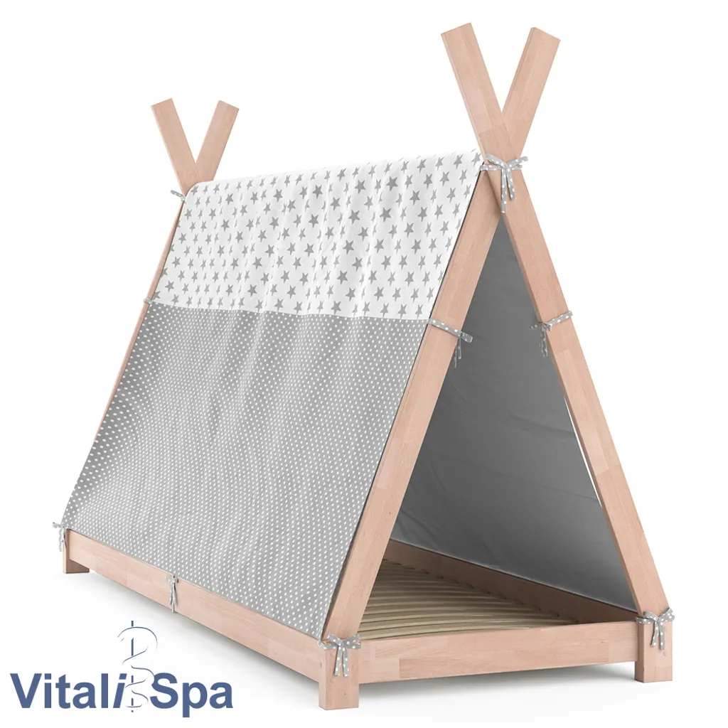 – Im Lieferumfang enthalten sind das Kinderhaus Tipi, ein Bettüberwurf und eine bebilderte Montageanleitung.