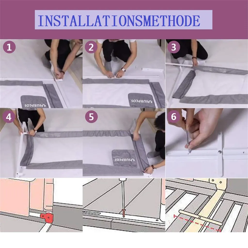 – Die doppelseitige faltbare Bettschiene benötigt kein Werkzeug und lässt sich schnell zusammenbauen. Da es leicht zu montieren und zu demontieren ist, sind die Bettgitter für Kleinkinder ideal für Reisen oder Übernachtungen bei Omas und können nach dem Zerlegen in einen Koffer passen.