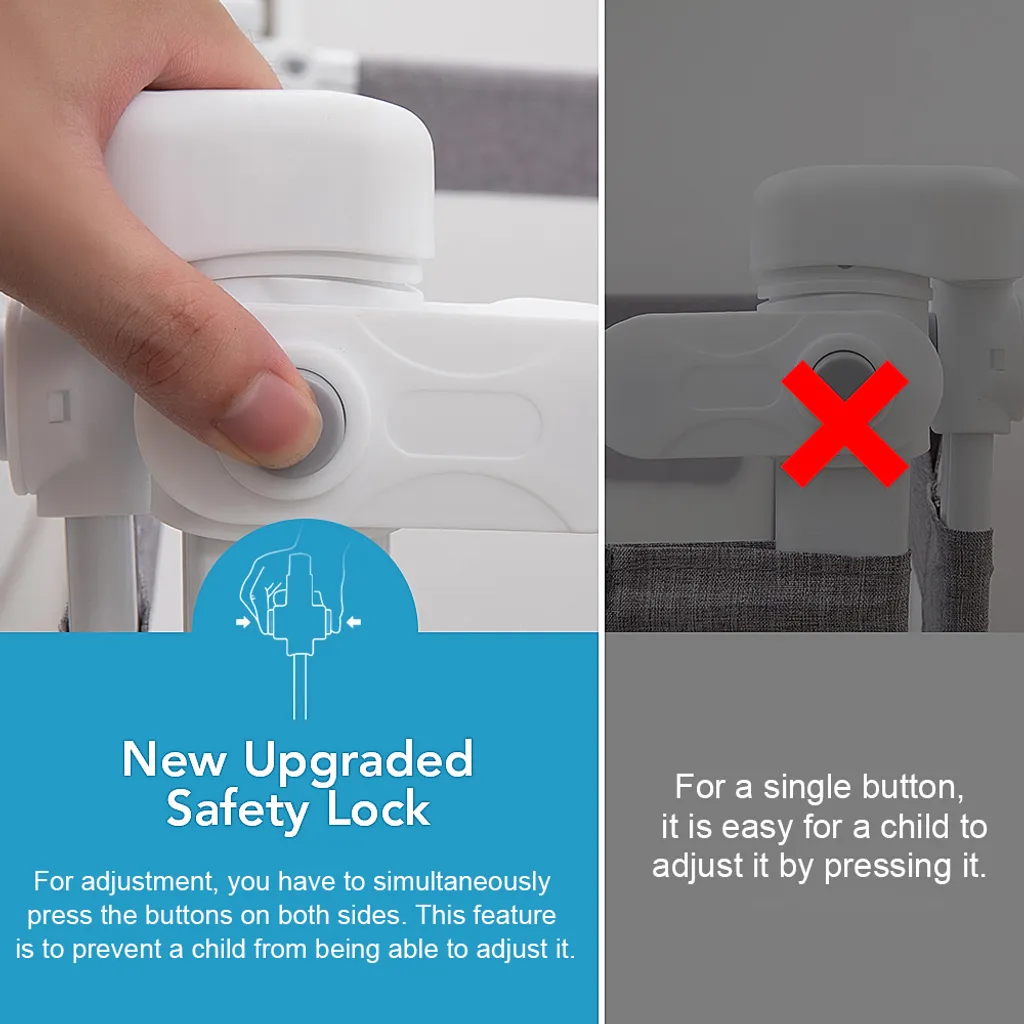 【Neue verbesserte Bettleitplanke】Die Höhe der Basis kann von 0 bis 23 cm eingestellt werden, um die Anpassungsfähigkeit zu erhöhen und auf verschiedenen Arten von Betten zu installieren. Es verhindert, dass Kinder herausklettern und vom Bett fallen. Es wird für Kinder zwischen 1 und 5 Jahren empfohlen.